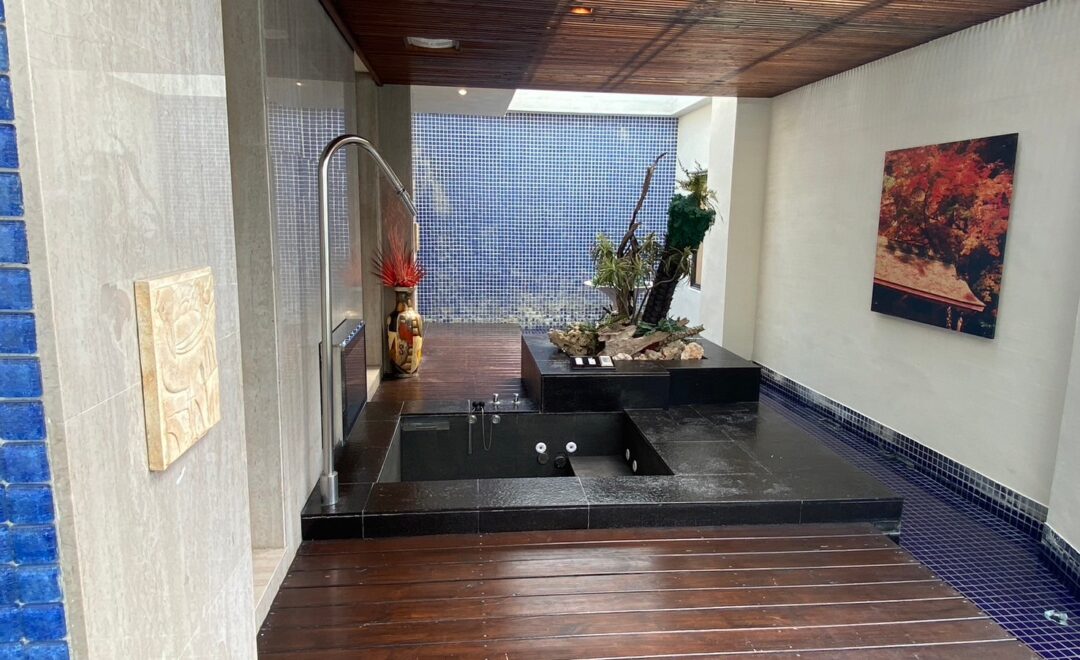 灌頂SPA/蒸汽室、按摩石造浴缸/32寸水晶電視